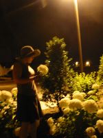 Lee on the flowery path on the side of Lancaster at night.