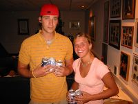 Neal and I hung out at Lenoi's house! 1,500 points! Mark Leoni = 100pts. Sarah Burlingham = 100pts. Two in the same pictures means you multiply them together. Plus 100pts for every beer in the picture.
