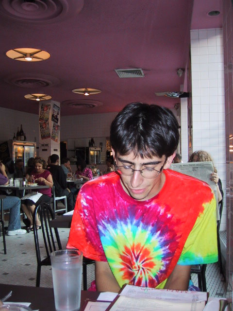 Neal at the NYC diner - he got a nine dollar hamburger.